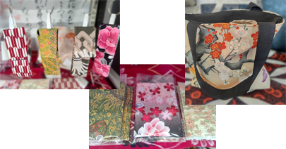 地域の職人さんや地域の事業所の方と一緒に着物などを利用したアップサイクル品の企画・販売を行っております。